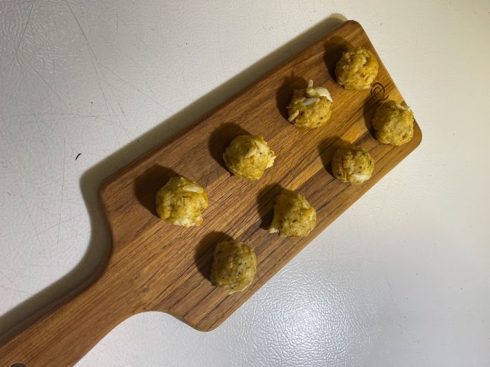 I love these mini Crab Cakes. They are perfect as a hors-d’oeuvre or appetizer. They are tasty enough that no sauce is needed- but a remoulade or even a tarter sauce would compliment them nicely. Super easy to work with- from frozen into a 400f oven for 13-14 minutes.