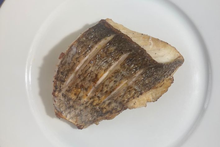 IMPORTANT NOTE - The skin will retract in response to the hot pan, causing the fillet to curl and rise. If you score the skin beforehand or gently press down with a spatula, your fillet will remain flat. You’ll figure it out. Nothing to stress about. Play with it 👨🍳😊