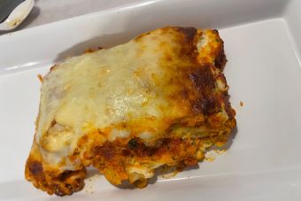 I wanted a lasagna without meat for my vegetarian client’s but everybody will enjoy this cheesy delight. Super easy to work with. From frozen- pop into micro for 1 minute. Then remove from container and place frozen lasagna on a cookie sheet. Cover with aluminum foil and bake in a 350f oven for 50 min. Should have an internal temp of 165f or put another way- hot in the middle. You can micro in these microwavable containers. You can micro from frozen but I think it best to thaw first. Here’s the point- you can heat this lasagna numerous ways. Just use common sense and make sure it’s hot in the middle. But I do prefer the baking version for the best results.
